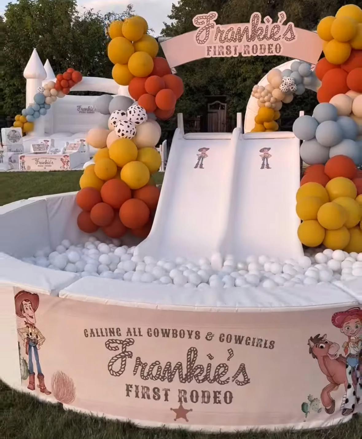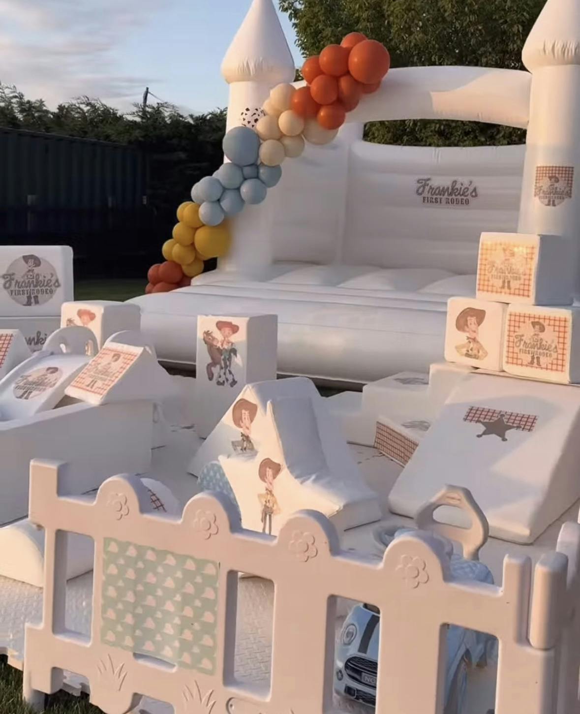 - The 10ft White bouncy castle with show-stopping balloon garland